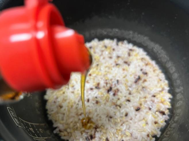 김밥 만들 때 밥도 꽤 중요한데요. 밥에는 참기름, 맛소금 등을 넣어 밑간을 합니다.