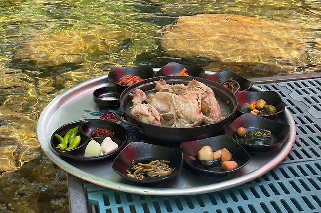 발을 담그고 식사를 할 수 있어 인기를 끌고 있는 백숙 맛집이다.