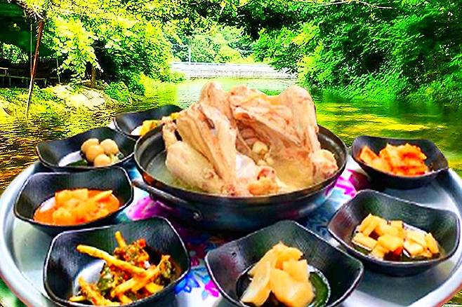 특히 이곳은 SNS에서 인기를 끌고 있는 계곡 백숙 맛집이다. 백숙 뒤로 보이는 계곡 뷰가 유명하며 자연 속 풍경이 무척 뛰어난 곳이다.