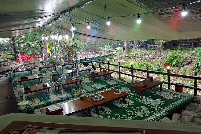 이곳의 특징은 평상이 자리한 바닥에 물이 차서 더욱 시원하게 시간을 보낼 수 있다는 것이다.