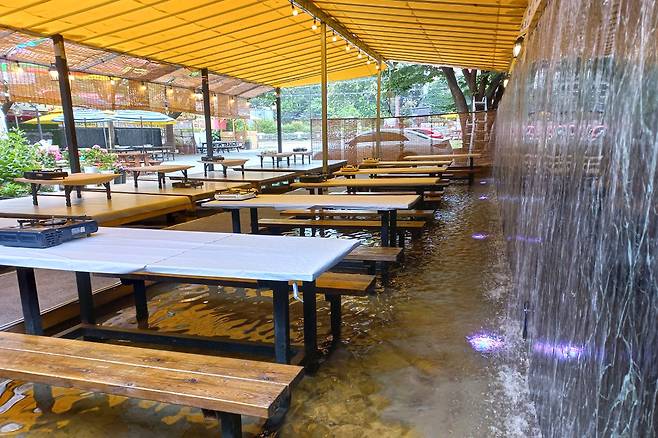 계곡물 위에 있는 테이블 덕분에 보기에도 시원한 풍경을 연출하고 있다.