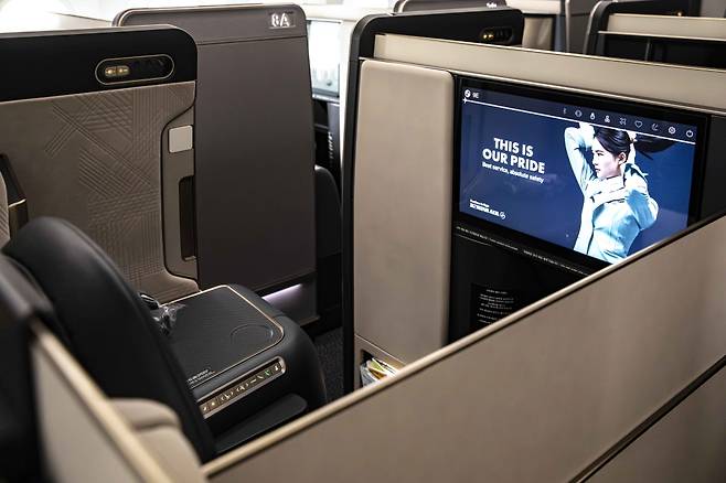 운 좋게 최신 기종인 B787-10의 프레스티지 스위트 2.0을 경험했다. 고급스럽고 차분한 느낌의 색상을 선택했다. 지금껏 봐왔던 치과 의자는 잊게 하는 세련된 스타일이다. 좌석도 독립된 공간을 확보할 수 있어 무척 편하다.