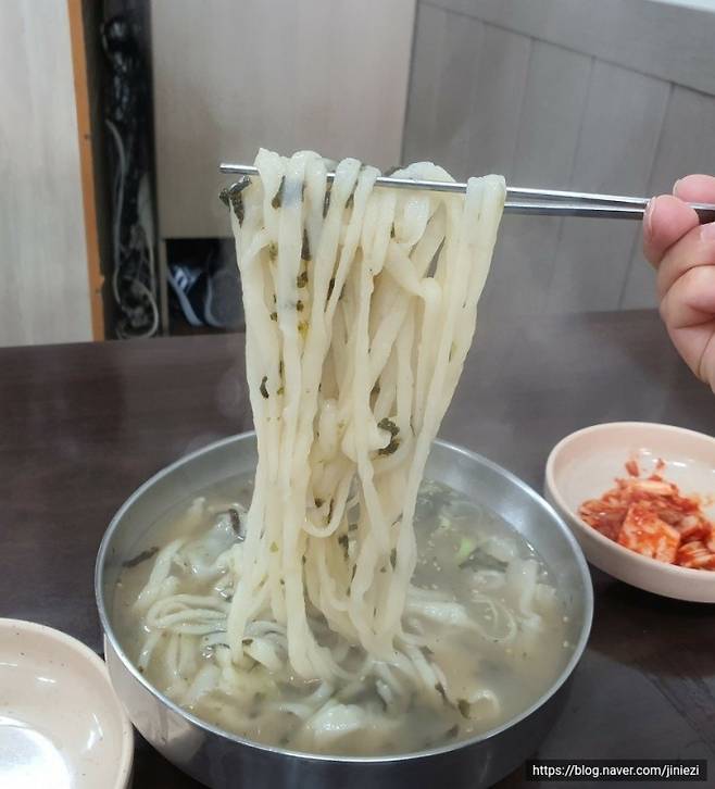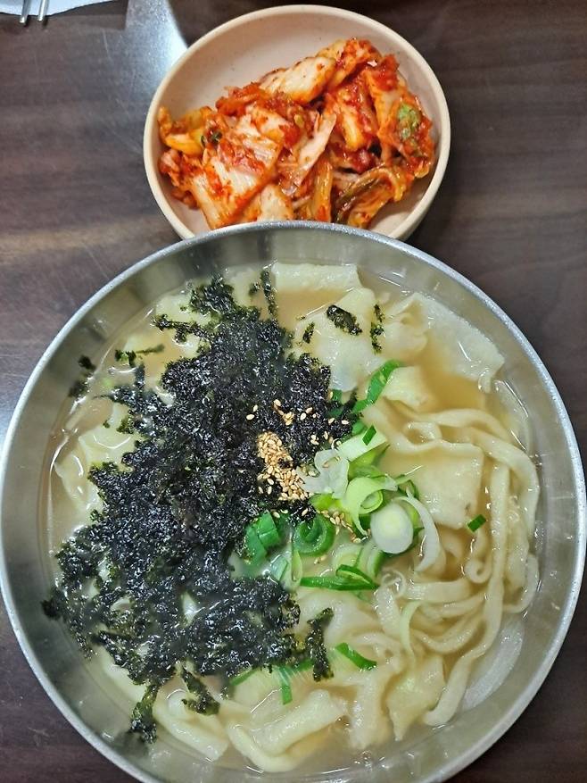 상호부터 내공이 느껴지는 곳이다. 그냥 칼국수도 아니고 옛 맛을 지닌 손 칼국수가 무려 4500원이다. 손으로 뜬 수제비는 5000원, 칼국수와 수제비에서의 고민을 해결해주는 칼제비도 5000원이다. 육수는 깔끔하고 시원한 멸치 육수에 파와 깨 그리고 고소한 김이 듬뿍 들어간 맛이다. 마치 오픈 키친처럼, 사장님이 직접 반죽하는 모습을 볼 수 있어서 신뢰가 간다. 칼국수에 빼놓을 수 없는 김치도 익은 김치, 생김치 두 가지로 준비돼 있어 가격 그 이상의 만족을 느낄 수 있다.