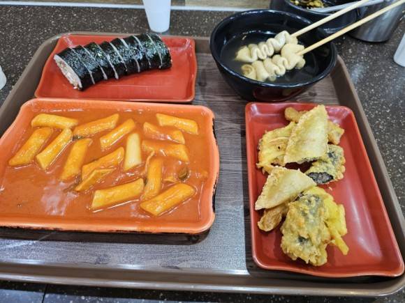 떡볶이 1인분에 500원이던 시절이 있었다. 요즘은 1만원을 넘어 2만원을 향해 가는 시대니 2000원대만 봐도 반갑다. 그런데 먹깨비김밥은 앞자리 수가 다르다. 떡볶이 1인분에 1500원. 게다가 어묵은 500원, 야채 김밥은 2500원이다. 가격에서 느낀 반가운 마음은 맛에서도 이어진다. 달짝지근하고 고전적인, 모두가 기억하는 초등학교 앞 떡볶이 맛이다.