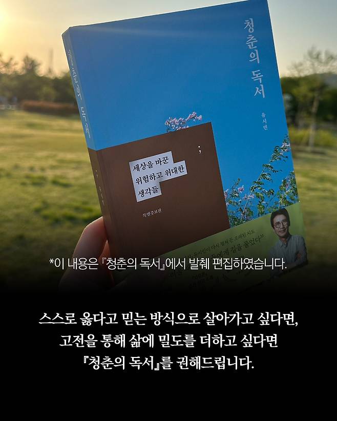 스스로 옳다고 믿는 방식으로 살아가고 싶다면, 고전을 통해 삶에 밀도를 더하고 싶은 분들께 『청춘의 독서』를 읽어보기를 권합니다.