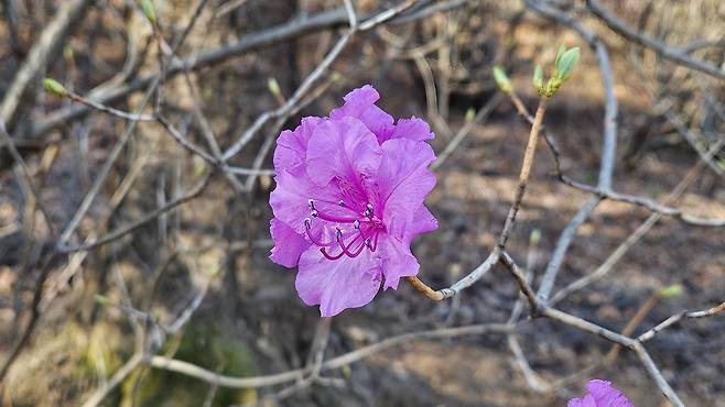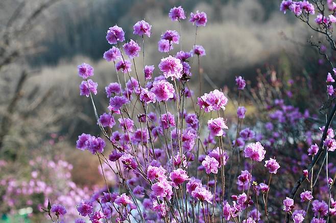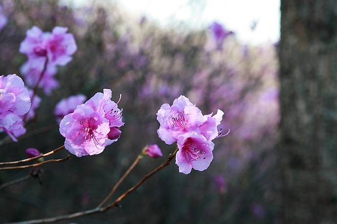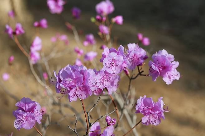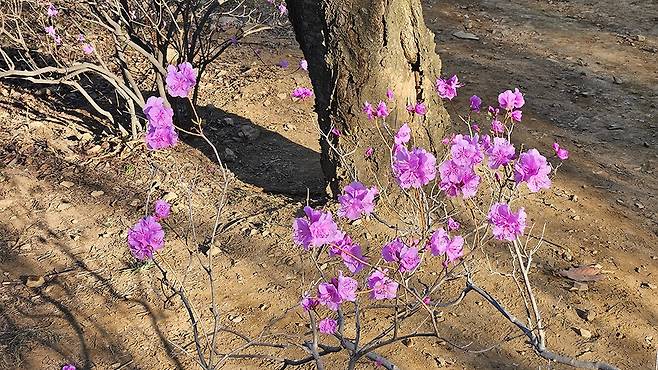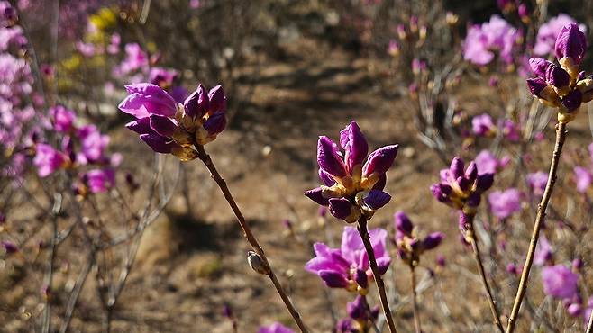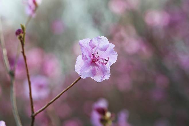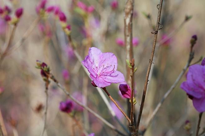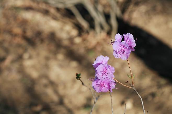 꽃 하나하나는 수수하지만, 함께 모여 산과 들을 온통 수놓으면 무엇보다도 화려하게 빛나는 분홍빛 꽃인 진달래는, 어쩌면 보잘것없는 작은 목소리의 개인이 모여 도도한 역사의 강물을 만들어 내는 한국인들을 닮았다는 생각이 듭니다. 겨울을 이겨낸 메마른 땅에서 누구보다도 먼저 가장 화려하게 피어날 수 있는 꽃 진달래는 좋아하는 꽃 중에 하나입니다.