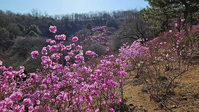 전국적인 산불로 간소하게 치러진 이번 진달래 축제는 3/29~3/30일로 이미 지났지만 진달래 개화 상태를 보면 이제 시작하는 느낌이라 앞으로 1주 정도는 충분히 진달래를 감상할 수 있을 것 같습니다. 부천종합운동장역 2번 출구를 나와 조금 걸으면 활 박물관이 나오고 바로 진달래 동산 입구가 나옵니다. 나지막한 동산을 돌며 분홍빛 진달래를 맘껏 느껴볼 수 있습니다.