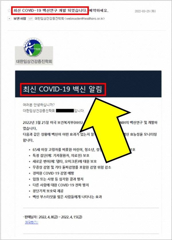 그 외에도 코로나 백신 알림을 보내 낚기도 하는데요.
