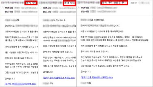 특히 질병관리본부,금융감독원등의 정부기관이 발신자로 되어있는 메일은 사칭일 가능성이 높으니 절대 클릭하지 않는 편이 좋죠.