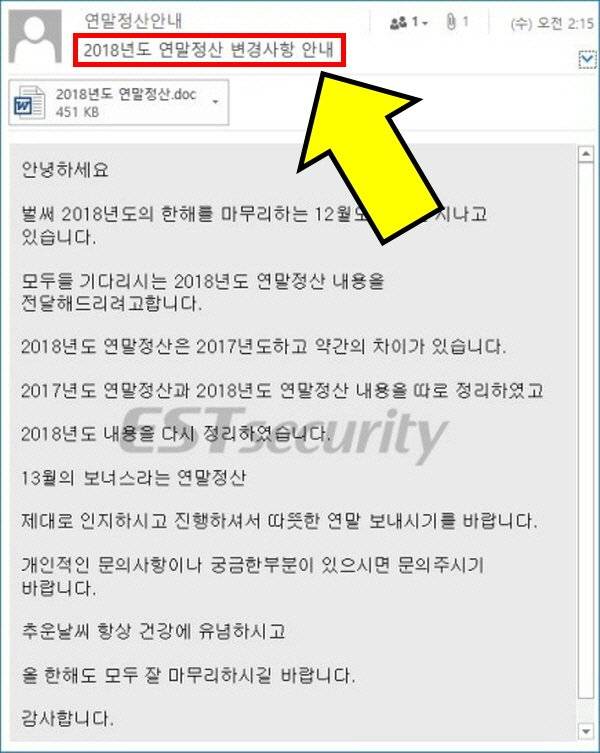 이런 무시무시한 랜섬웨어는 연말정산 메일뿐만이 아니라, 입사 지원서나 '열심히 하겠습니다.'라는 제목으로 위장한 이력서 등을 사칭해 전달되는 경우도 많다고 하는데요.