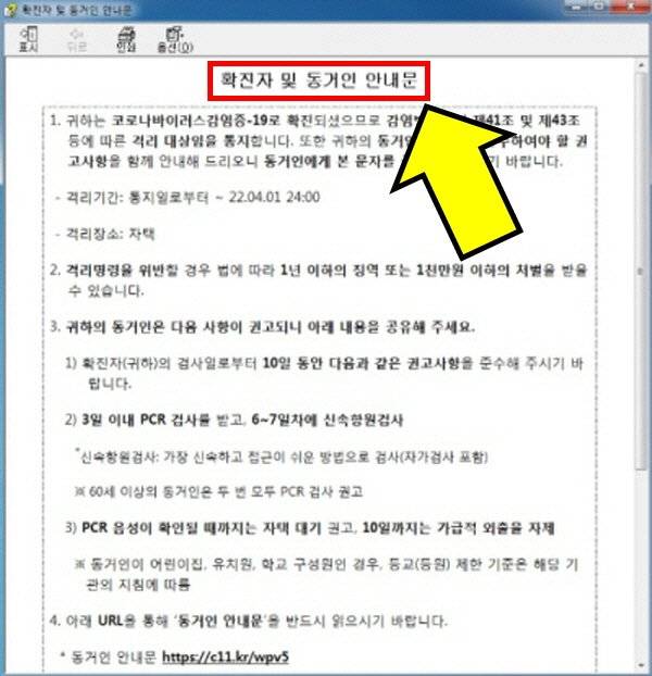 안내문을 다운받자 코로나 격리 관련 안내문이 나와 놀라서 보건소에 전화를 걸어보면 전혀 모르는 일이라는 답변이 돌아옵니다.
