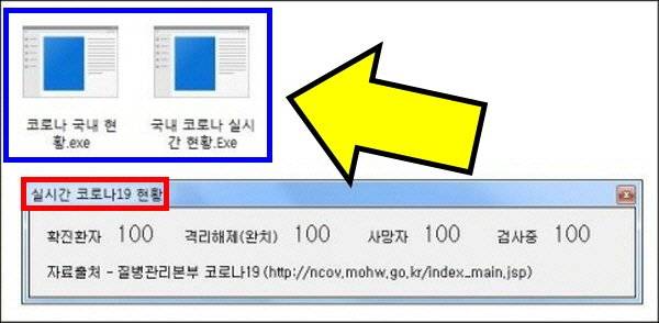 이런 무시무시한 악성코드가 담긴 메일은 코로나 실시간 현황을 볼수 있는 프로그램으로 위장합니다.