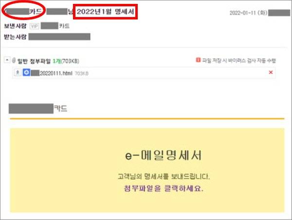 신용카드회사에서 보낸 명세서 메일이 매우 위험한 거 알고 계시나요? 바로 북한에서 보낸 메일일 수 있기 때문인데요.