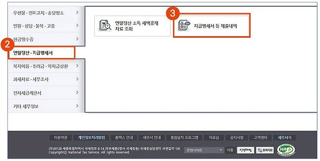 이전 회사에 요청하지 않아도 발급할 방법은 있다. 바로 국세청 홈택스를 이용하는 방법이다. 모든 사업자는 1년 동안 원천징수 하는 소득을 지급한 경우에는 다음 해 2월 말이나 3월 10일까지 이에 대한 내용을 정리하여 지급명세서를 제출하게 되어 있다. 소득자별로 구분하여 제출하기에 이 자료가 제출되면 소득자는 본인에 해당되는 분을 직접 조회할 수 있게 된다. 조회 시기는 지급명세서 제출이 3월 중에는 이루어지니 늦어도 4월에는 가능하다.