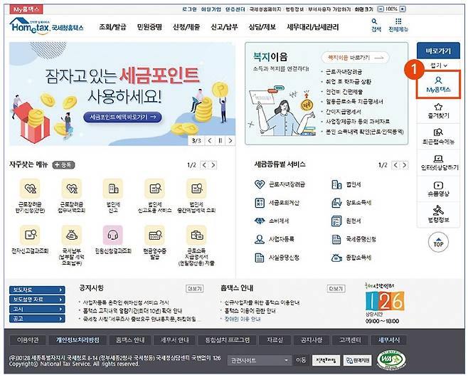 홈택스에 로그인하고 접속하면 상단에 ‘My홈택스’라는 메뉴가 있다. 여기를 클릭해서 들어가면 나와 관련한 모든 세무 내역이 나온다. 하단 좌측 메뉴 중에 ‘연말정산, 지급명세서’라는 란이 있고 그중에서 ‘지급명세서 등 제출내역’으로 들어가면 우리가 필요한 원천징수영수증을 볼 수 있다.