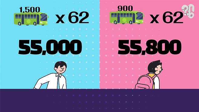 청소년 버스나 지하철 같은 거를 깎아주는 거는 사실 청소년 할인이 아니고 청소년 요금인 거잖아요. 사회 구조상 학원에 왔다 갔다 하는 것도 필수적인 거니까 최소 세네 번씩 이용을 할 수밖에 없어요. 대중교통을 그러면은 저 같은 경우에 그러면 대충 한 학교 왔다 갔다 하고 학원 왔다 갔다 하면 한 8만 원 정도가 나와요, 한 달에.