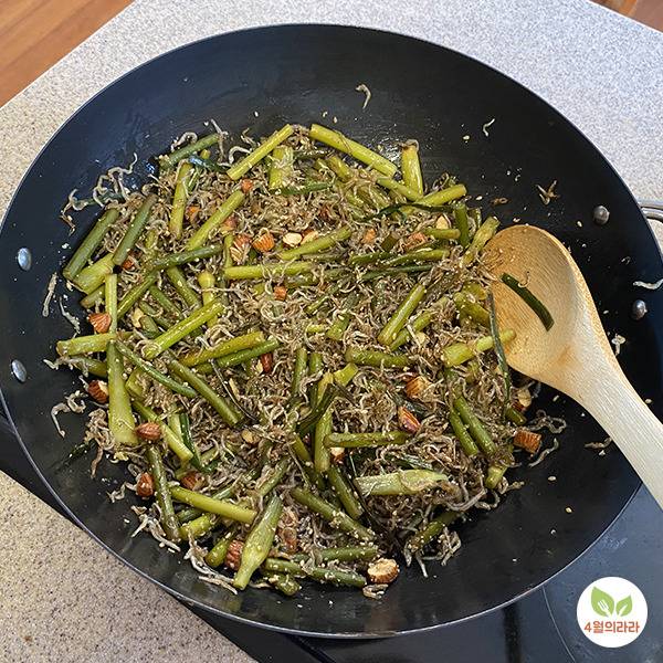 안녕하세요, 4월 말에서 6월 초가 제철인 마늘쫑은 마늘의 어린 줄기로, 마늘의 효능을 그대로 담고 있으면서도 특유의 아삭한 식감과 은은한 향이 일품이에요. 오늘은 싱싱한 마늘쫑과 고소한 잔멸치, 그리고 통아몬드를 활용해 밥도둑 밑반찬을 만들어볼 거예요. 누구나 쉽게 따라 할 수 있는 레시피이니 꼭 함께 만들어보세요!