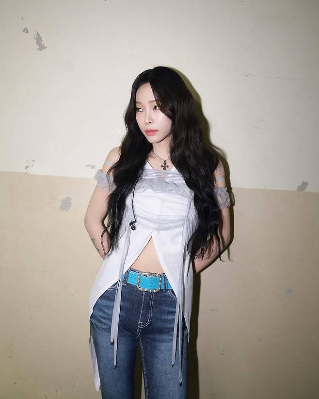 특히 눈길을 끈 것은 은은한 광택감의 메탈릭 통굽 샌들. 굽이 높고 독특한 디자인이 전체 스타일의 무드를 Y2K 감성으로 끌어올렸으며, 벨트와 마이크의 색상까지 맞춘 디테일이 팬들의 열광적인 반응을 이끌어냈다. 댓글에는 “헤이즈 패션 진짜 레전드”, “청바지랑 힐 조합 미쳤다” 등의 반응이 이어졌다.