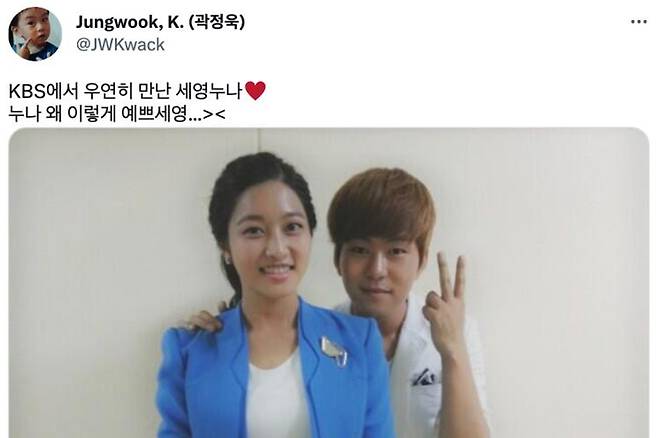 이에 곽정욱이 교제 전 SNS에 올린 글이 재조명되기도 했습니다. 2013년 7월 그는 박세영과 함께 찍은 사진을 올리며 “KBS에서 우연히 만난 세영누나♥ 누나 왜 이렇게 예쁘세요”라는 글을 남긴 바 있습니다.