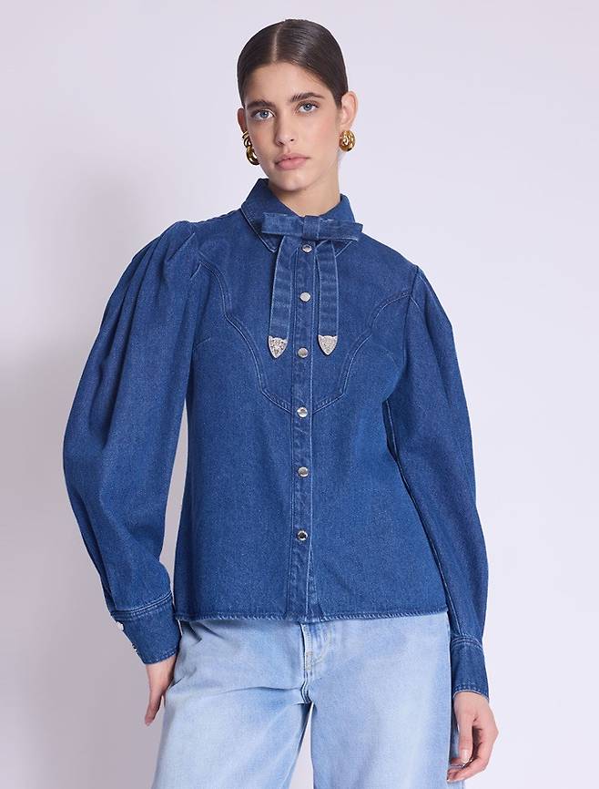 프렌치 컨템포러리 브랜드 '베르니스(BERNICE)' 리본 타이 데님 블라우스 '관심폭발'