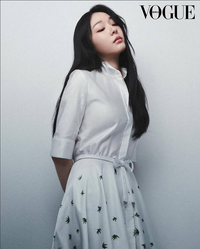여기에 그레이 톤의 슬랙스를 매치해 색을 절제한 대신 실루엣과 소재감으로 완성도를 끌어올렸으며, 또 다른 컷에서는 잔잔한 패턴이 들어간 화이트 시스루 원피스로 맑고 정돈된 분위기를 이어갔습니다.