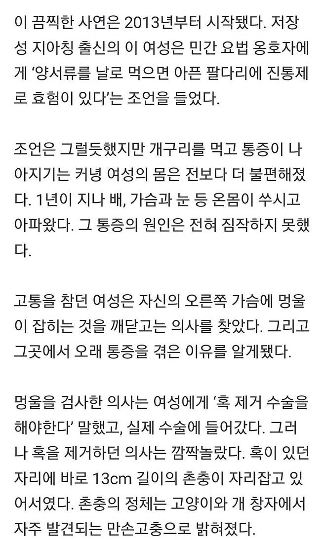 그걸 본 뒤로 괜히 속이 안좋고 넘 징그러워서 소름이 자꾸 일더라구요 무섭구요