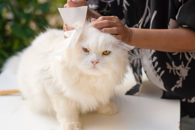 눈이나 귀와 같은 부위는 고양이가 스스로 그루밍이 불가해 집사의 관리가 필요해요. 자주 해줄 필요는 없지만, 눈곱이나 귀지가 생겼을 경우에는 티슈를 이용해 제거하셔야 합니다. 눈이나 귀 모두 예민한 신체 부위이기에 힘을 주지 않고 살살 문질러 제거하시는 것을 추천드려요.