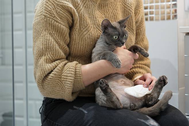 목욕의 필요성이 크지 않은 고양이도 이물질이 묻은 경우에는 목욕이 필요해요. 화장품, 향수, 음식물 등이 묻은 경우 그루밍을 통해 섭취한다면 중독 증상과 피부 염증의 위험이 있기 때문입니다.