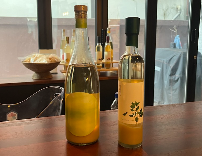▶ 같이 양조장의 대표 시리즈인 ‘연희 시리즈’ 술이다. 기존 양조장이 있었던 ‘연희동’을 각종 과일과 향신료를 사용해 술로서 재해석했다. 또 다른 술로는 ‘써머 딜라이트 샤인머스캣’이다. 이건 컬래버레이션 제품인데, 전통주 전문 비즈니스 기업 ‘대동여주도’와 함께 협업해 만들었다. 구멍떡을 활용해 빚는 삼양주인데, 유튜브 채널 ‘14F 일사에프’ 주락이월드에 소개된 적이 있다. 샤인머스캣의 달콤함도 잘 나타나고 무엇보다 풍미가 좋아서 요즘 가장 잘나가는 술이다.