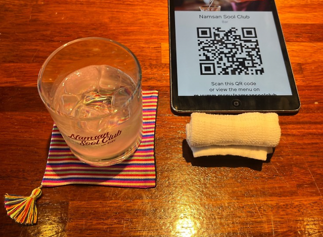 자리에 앉으면 따뜻한 물수건과 함께 시원한 물 한잔과 QR 메뉴판이 나온다. QR을 통해 메뉴판을 확인하면 남산술클럽만의 전담 큐레이션의 시작이다.