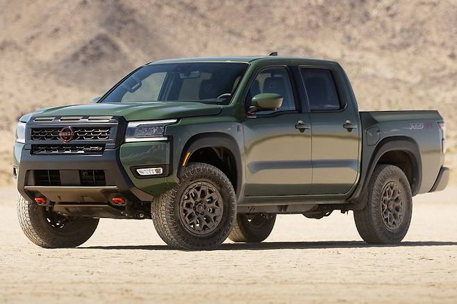 닛산 프론티어는 전통적인 바디-온-프레임 방식의 미드사이즈 트럭이다. 이는 오프로드 성능과 견인 능력을 중시하는 정통파 트럭 소비자에게 큰 장점이다. 모든 트림에 3.8L V6 엔진이 기본 장착되어 310마력의 강력한 출력과 토크를 자랑하며, 견고한 하드웨어 기본기에 충실한 모델이다. 경쟁 모델보다 기술적 사양은 다소 단순할 수 있지만, 뛰어난 견인 능력과 튼튼한 내구성이 장점이다. 오프로드에 특화된 PRO-4X 트림도 선택할 수 있으며, V6 엔진임에도 고속도로 연비는 24MPG(약 10.2km/L)로 준수한 편이다.