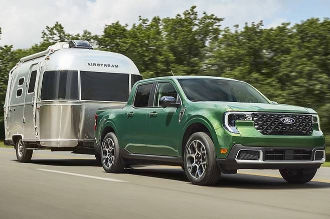 포드 매버릭은 현재 북미 시장에서 가장 저렴한 신형 픽업트럭이라는 타이틀을 가진 모델이다. 컴팩트한 크기와 유니바디(모노코크) 구조를 채택하여 전통적인 트럭보다 도심 주행과 주차에 압도적으로 유리하다. 특히 주목할 점은 표준 하이브리드 파워트레인을 기본 장착했다는 것이다. FWD 하이브리드 모델은 복합 연비가 38MPG(약 16.1km/L)로 매우 뛰어나 고유가 시대에 강력한 경쟁력을 갖춘다. 2025년 모델부터는 하이브리드 모델에도 사륜구동(AWD) 옵션이 추가될 것으로 예상되어 활용성이 더욱 높아지며, 적재함의 ‘플렉스베드’ 기능으로 DIY 활용까지 가능하다.