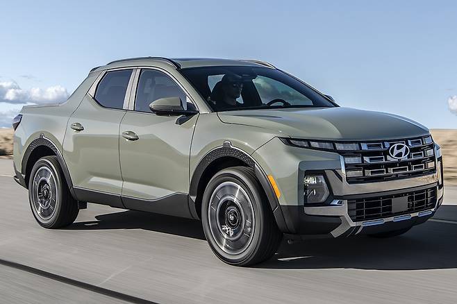 싼타크루즈는 포드 매버릭과 유사하게 유니바디 구조를 가진 컴팩트 픽업트럭으로, SUV와 유사한 부드러운 승차감과 뛰어난 핸들링이 가장 큰 강점이다. 2025년 모델은 페이스리프트를 통해 전면부 디자인을 더욱 세련되게 변경하고 실내 인테리어와 첨단 기술을 대거 개선하여 상품성을 높였다. 실내 디자인은 싼타페와 유사하게 고급스러움을 지향하며, 동급 대비 높은 품질을 자랑한다. 강력한 성능을 원하는 운전자를 위해 281마력의 2.5L 터보 엔진 옵션도 제공하며, 기본 엔진 FWD 모델의 고속도로 연비는 30MPG(약 12.7km/L)로 준수한 효율성을 보인다.