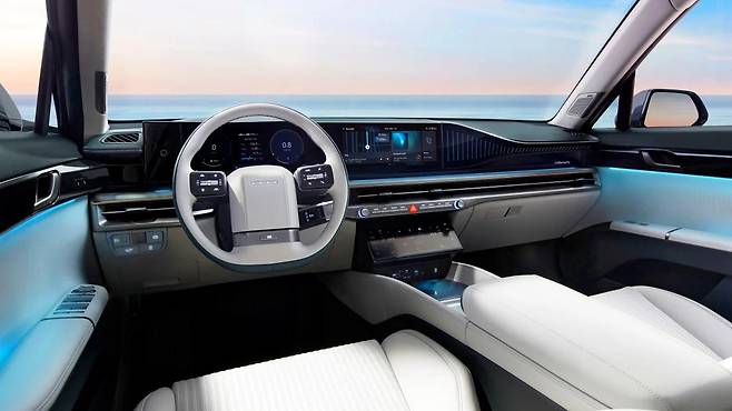 전면부의 심리스 호라이즌 램프와 측면의 유려한 라인은 고급스러운 이미지를 강화했고, 실내는 12.3인치 커브드 디스플레이와 전자식 칼럼 변속기, 앰비언트 라이트가 어우러져 플래그십 세단다운 품격을 보여준다.