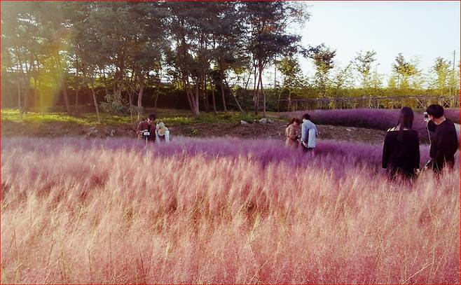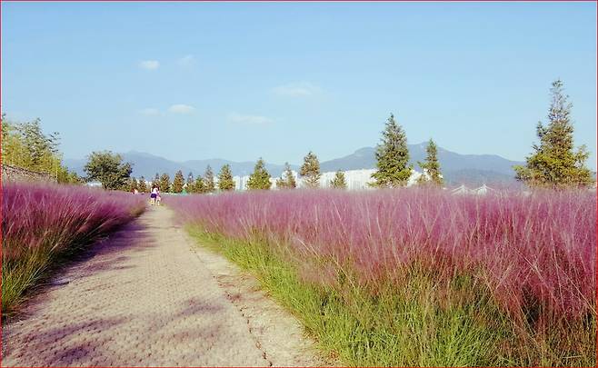 언덕 위에 오르면 사방이 핑크빛으로 물든 풍경이 펼쳐집니다. 햇살을 머금은 핑크뮬리는 바람에 살랑이며 한 폭의 그림처럼 눈길을 사로잡습니다.