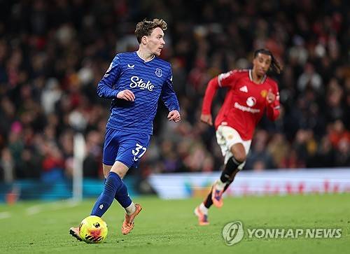 epa12546742 James Garner of Everton in action during the English Premier League match between Manchester United and Everton FC in Manchester, Britain, 24 November 2025. EPA/ADAM VAUGHAN EDITORIAL USE ONLY. No use with unauthorized audio, video, data, fixture lists, club/league logos, 'live' services or NFTs. Online in-match use limited to 120 images, no video emulation. No use in betting, games or single club/league/player publications.