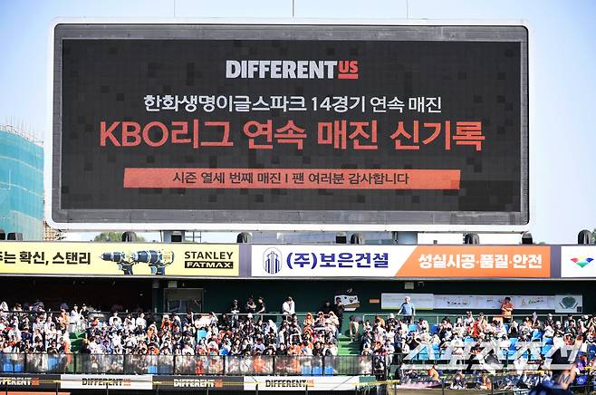27일 대전 한화생명이글스파크에서 열린 한화와 두산의 경기. 14경기 연속 만원관중을 알리는 전광판. 대전=송정헌 기자songs@sportschosun.com/2024.04.27/