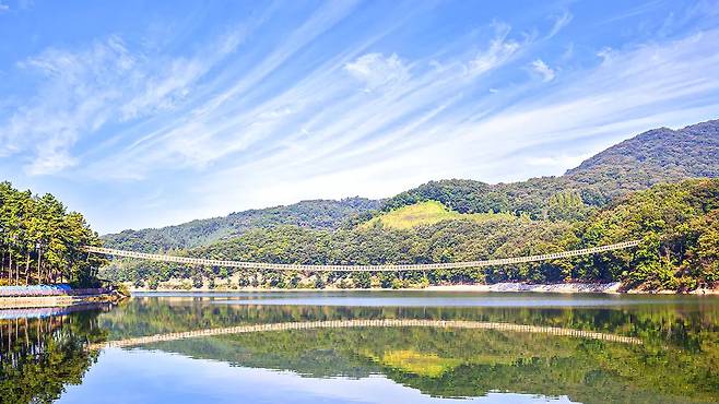 220m 길이의 출렁다리를 건너며 호수 위를 걷고, 4.5km 순환산책로를 따라 물결과 숲 사이를 산책하는 이곳은 도심과는 완전히 다른 풍경과 감각을 선사한다.