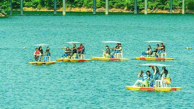 마장호수에서는 걷는 즐거움 외에도 수상레저를 통해 물 위에서의 경험을 할 수 있다. 카약, 카누, 수상자전거 등 비교적 안정적인 레저 종목으로 구성되어 있으며, 30분 기준 2인 15,000원의 요금으로 누구나 부담 없이 즐길 수 있다.