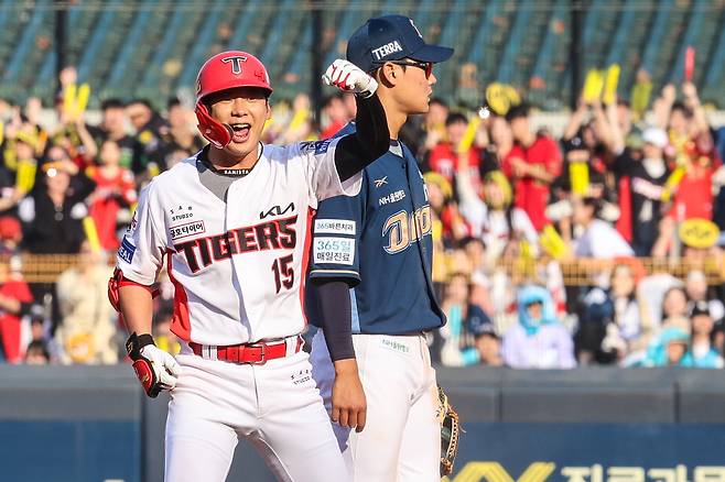 이어 나성범의 볼넷에 이은 폭투로 만들어진 2사 2루, 김태군이 펜스 때리는 2루타로 리드를 가져왔다.