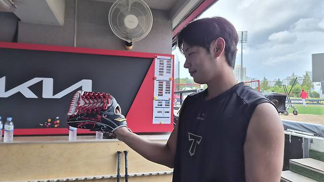 박정우는 애지중지 글러브를 들고 다니면서 보는 이들에게 자랑을 했다.