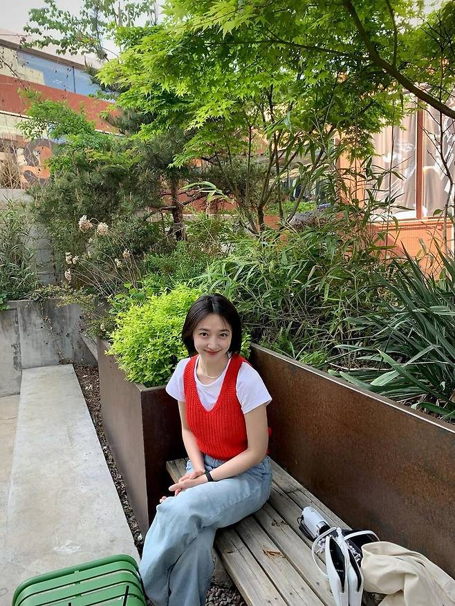 이날 표예진은 맑은 날씨만큼이나 산뜻한 스타일링으로 분위기를 더했다. 패션의 중심이 된 아이템은 단연 ‘빨간 니트 베스트’. 브라이트한 레드 컬러는 초록 식물들 사이에서 단연 눈에 띄며, 계절감을 고스란히 반영한다. 니트 특유의 짜임 덕분에 가벼우면서도 은근한 포인트가 되어준다.