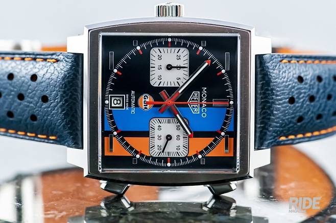 이번에 소개하는 걸프 리미티드에디션은 모터사이클로 독일의 빅토리아 모토라드가 니키 모델로 함께 협업한 것이다. 니키의 클래식한 디자인과 걸프 오일의 독특한 컬러링이 만나 매우 매력적인 결과물이 탄생했는데, 모터스포츠 시장에서 걸프는 날렵한 슈퍼카나 날카로운 레이스머신 등에 걸프의 컬러링을 리버리로 입혀왔다. 참고로 리버리란 1968년 F1의 FIA가 스폰서 노출을 전격적으로 허락하면서 F1 머신에 팀이나 스폰서, 기업 등을 상징하는 컬러로 꾸밀 수 있게 한 것을 의미한다.