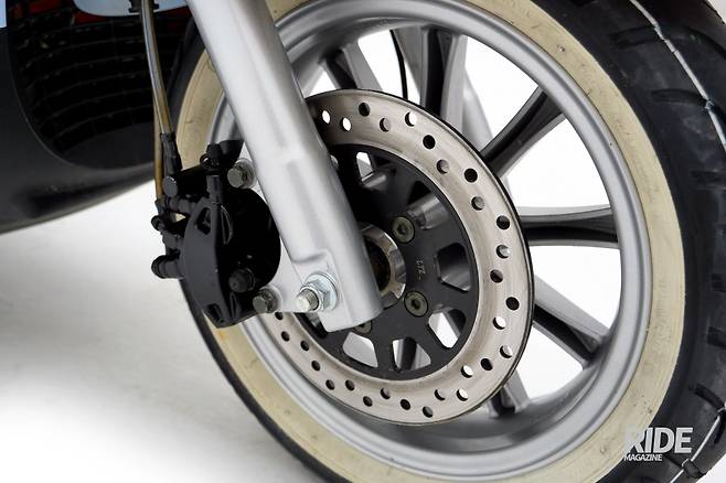 브레이크는 앞뒤 모두 디스크에 2채널 ABS로 안정성을 높였고, 서스펜션은 앞 정방향 텔레스코픽 포크에 뒤 듀얼 쇼크 업소버 구성이다. 시트는 고급스러운 퀼팅 스타일로 디자인됐고 앞뒤 분리형으로 2인이 타도 편하다. 시트 뒤쪽에 작은 캐리어도 기본으로 장착되어 있어 활용도가 높다. 플로어 패널의 공간이 생각보다 넉넉해 작은 짐이나 가방 등을 놓고 라이딩하기 편하고, 운전석 시트 하단에 헬멧 1개를 수납할 수 있는 트렁크 공간도 넉넉하다.
