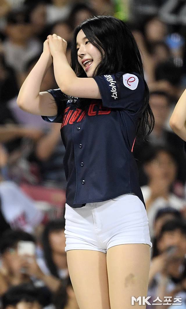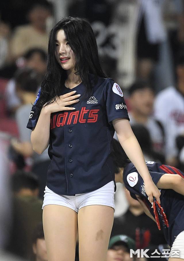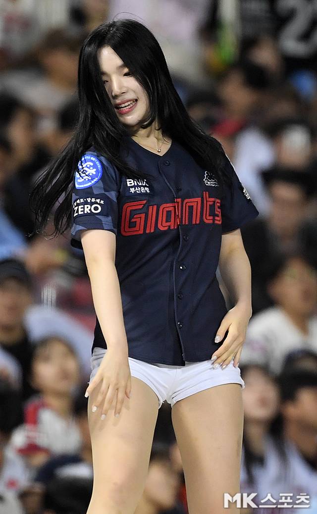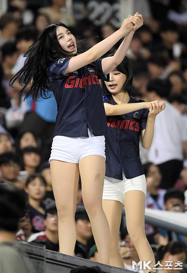 롯데 치어리더 조연주가 응원을 하고 있다.