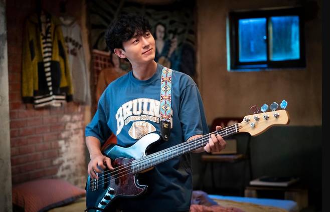 공개된 스틸 속 이지훈과 한승연은 옆집 벽 너머로 들려오는 수상한 소리에 놀라 기타와