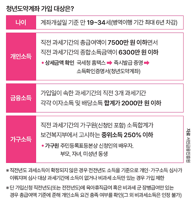 청년도약계좌는 청년의 중장기적 자산 형성을 지원하는 금융상품입니다. 만기 5년 동안 매월 70만 원 한도 내에서 자유롭게 납입하면 연 최대 6.0% 금리에 정부 기여금이 추가 지급되고 이자소득에 대한 비과세 혜택을 제공합니다. 계좌 개설일 기준 19~34세, 직전 과세기간 개인소득 총급여 7500만 원 이하 등 요건을 충족하면 가입할 수 있습니다. 자세한 내용은 정책주간지 'K-공감'에서 확인하세요.