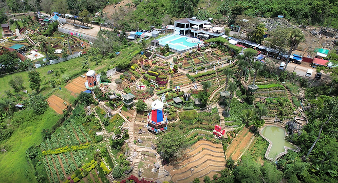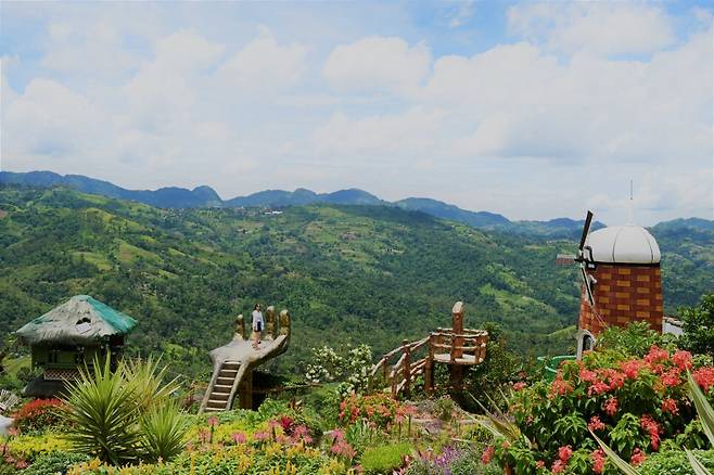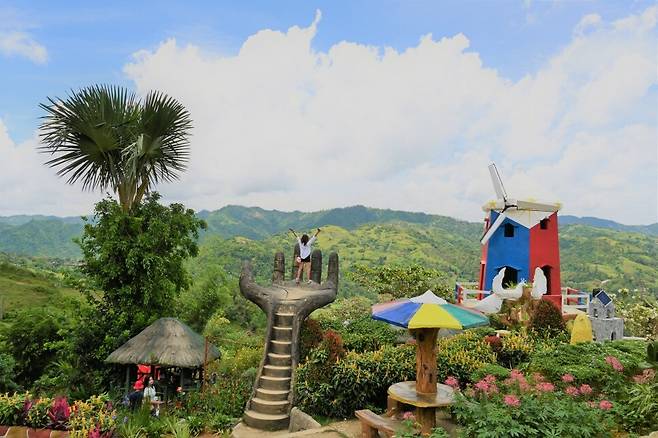 네덜란드 수도 암스테르담의 상징물은 튤립과 풍차다. 필리핀 세부에 의외로 작은 암스테르담이 있다. 시아로 가든(Siaro Garden)이다. 약 3600평 면적에 가득 만개한 꽃들 사이를 거닐 수 있다. 날개가 돌지는 않지만 알록달록한 풍차가 운치를 더한다. 풍차라기 보다는 커다란 바람개비로 느껴질 정도로 귀엽다. 베트남 다낭의 바나산 골든 브리지에서 영감을 얻은 듯한 큰 손 모양 전망대는 압도적이지는 않다. 그래도 몇 걸음 계단을 오르면 울창한 산림을 마주하게 된다.