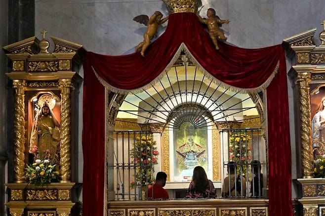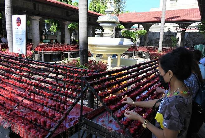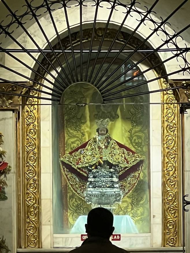 마젤란 십자가를 지나면 산토 니뇨 성당이다. ‘성스러운 아기’라는 뜻이다. 마젤란이 라지후미본 추장 가족에서 선물한 아기예수상을 보관하고 있다. 전쟁과 화재에도 훼손되지 않아 필리핀 사람들에게 수호신으로 여겨진다. 필리핀 각지에서 찾아온 순례자들이 성당 바깥 기도 공간에서 수많은 초에 불을 붙이며 건강과 행복을 기원한다.