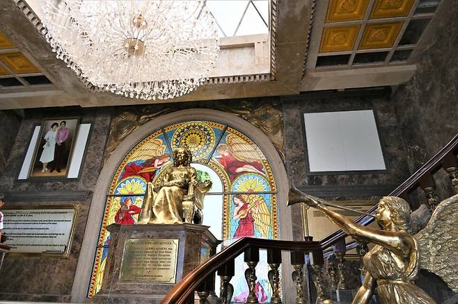 신전으로 입장하면 악사가 구슬픈 곡조로 바이올린을 켜고 있다. 계단을 오르면 금색 레아 동상이 있다. 그 뒤로 부인과 남편의 사진도 걸려 있다. 사원 밖으로 신전 앞마당 중앙에는 영화 로마의 휴일에서 본 듯한 상앗빛 분수가 있다. 필리핀 제2 도시 레아 도심 풍경이 펼쳐진다. 사연이 애틋하다 보니 커플 관광객이 많다. 미래의 연인을 만들려는 듯한 필리핀 총각의 구애도 눈에 띄었다.